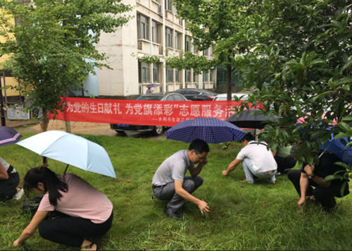 为深入推进“两学一做”学习教育常态化制度化,进一步发挥师生党员先锋模范作用,6月28日下午,水利与生态工程学院师生党员、机关第五党支部教工党员共50余人,在行政楼西侧开展清除杂草、美丽校园志愿服务活动,为党的生日献礼、为党旗添彩。