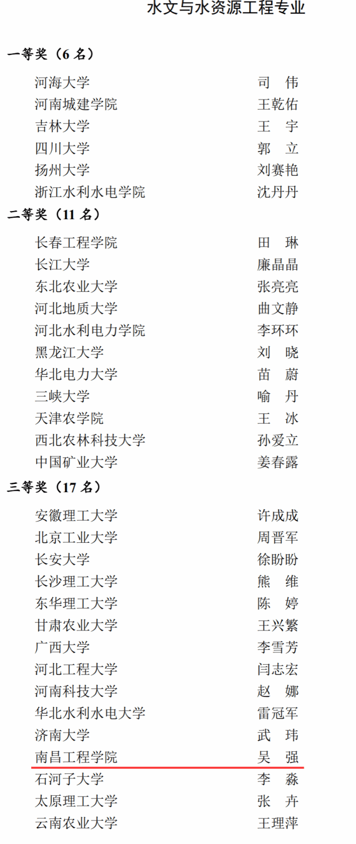据悉,全国水利类专业青年教师讲课竞赛由中国水利教育协会和教育部高等学校水利类专业教学指导委员会联合主办,每两年举行一次,是中国高等教育学会发布的2024年高校教师教学竞赛清单中53项赛事之一,是全国水利类高校中最有影响力的教师教学竞赛之一。本届竞赛水利水电工程专业竞赛组、水文与水资源工程专业竞赛组、港口航道与海岸工程专业竞赛组和农业水利工程专业竞赛组分别在南昌工程学院、长江大学、武汉大学、西北农林科技大学举行了现场决赛,共评出一等奖19名,二等奖32名,三等奖51名,获奖比例分别不超过现场竞赛人数的10%、20%和30%。