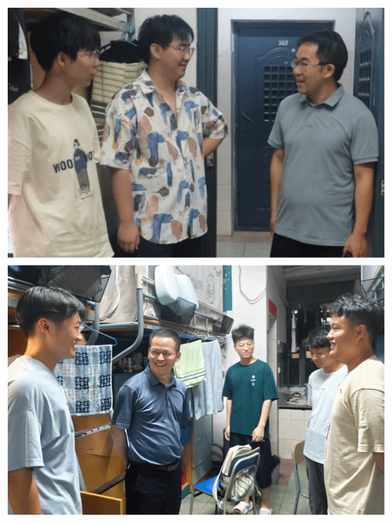 学院领导班子成员、辅导员先后前往学生宿舍5栋、14栋及15栋,就思想状况、家庭情况、到校后的学习生活状态等与新同学进行了亲切的交流,并送上节日问候和祝福。勉励同学们珍惜来之不易的学习机遇,快速熟悉适应大学生活,明确学习方向和奋斗目标;强化专业认同,切实做好学业规划,拓展学习生活的广度和深度;提高安全防范意识,注意用电安全,筑牢反诈防线。