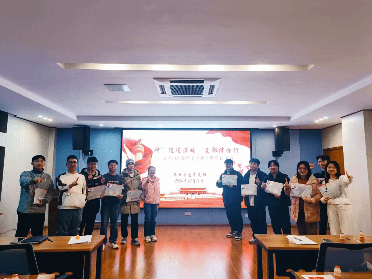 12月16日,水利工程学院第五学生党支部于逸夫楼B400开展“‘研’途送温暖,支部伴你行”助力考研主题党日活动,支部全体党员同志参加活动。