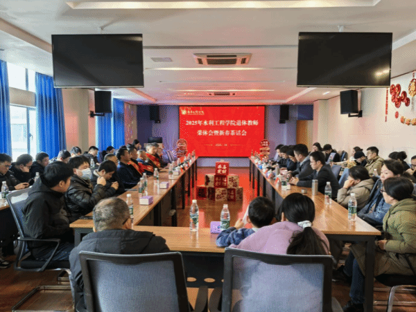 1月14日下午,水利工程学院在逸夫水利楼B400会议室举办退休教师荣休会暨新春茶话会,学院领导班子成员、退休教师以及全体教职工参加活动。