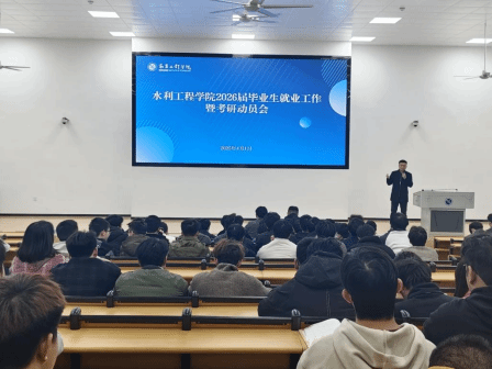 4月1日晚,水利工程学院在教学北楼举行2026届毕业生就业工作暨考研动员会。学院领导班子成员、辅导员、2022级班主任及全体2022级学生参加会议。