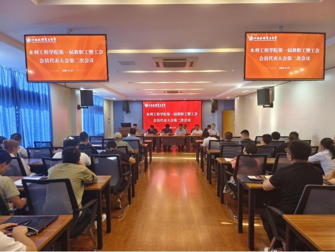 6月27日,水利工程学院一届二次教职工暨工会会员代表大会在逸夫水利楼B400召开。学院党委书记牛景太出席会议并讲话,执行院长江辉做学院工作报告,党委副书记、工会主席张建涛作工会工作报告及工会经费收支情况报告,57名代表参加会议。