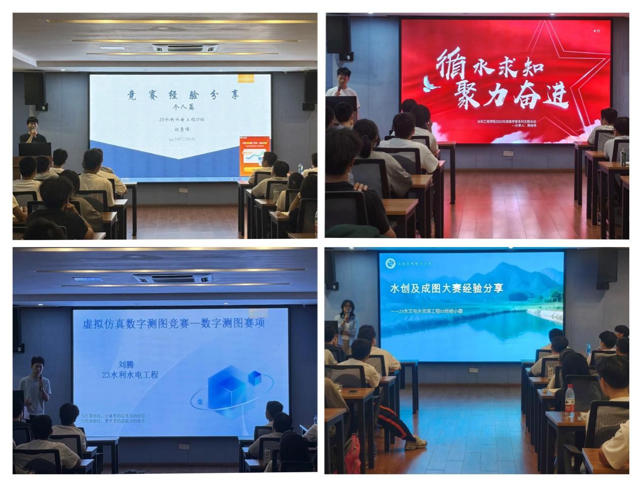 9月29日晚,水利工程学院于逸夫水利楼B400成功举办2025年朋辈学堂(第三期)“挑战自我,突破极限”主题分享会。本次分享会特邀四位在国家级竞赛中表现优异的学生代表,围绕参赛经验与成长感悟进行交流分享。受邀嘉宾包括:全国大学生测绘学科创新创业智能大赛机载激光雷达虚拟仿真比赛特等奖获得者熊佳伟、全国大学生数学竞赛国奖获得者胡康伟、全国大学生测绘学科创新创业智能大赛虚拟仿真数字测图比赛一等奖获得者刘腾,以及全国大学生水利创新设计比赛一等奖获得者杨小萌,50余名学生到场参与。