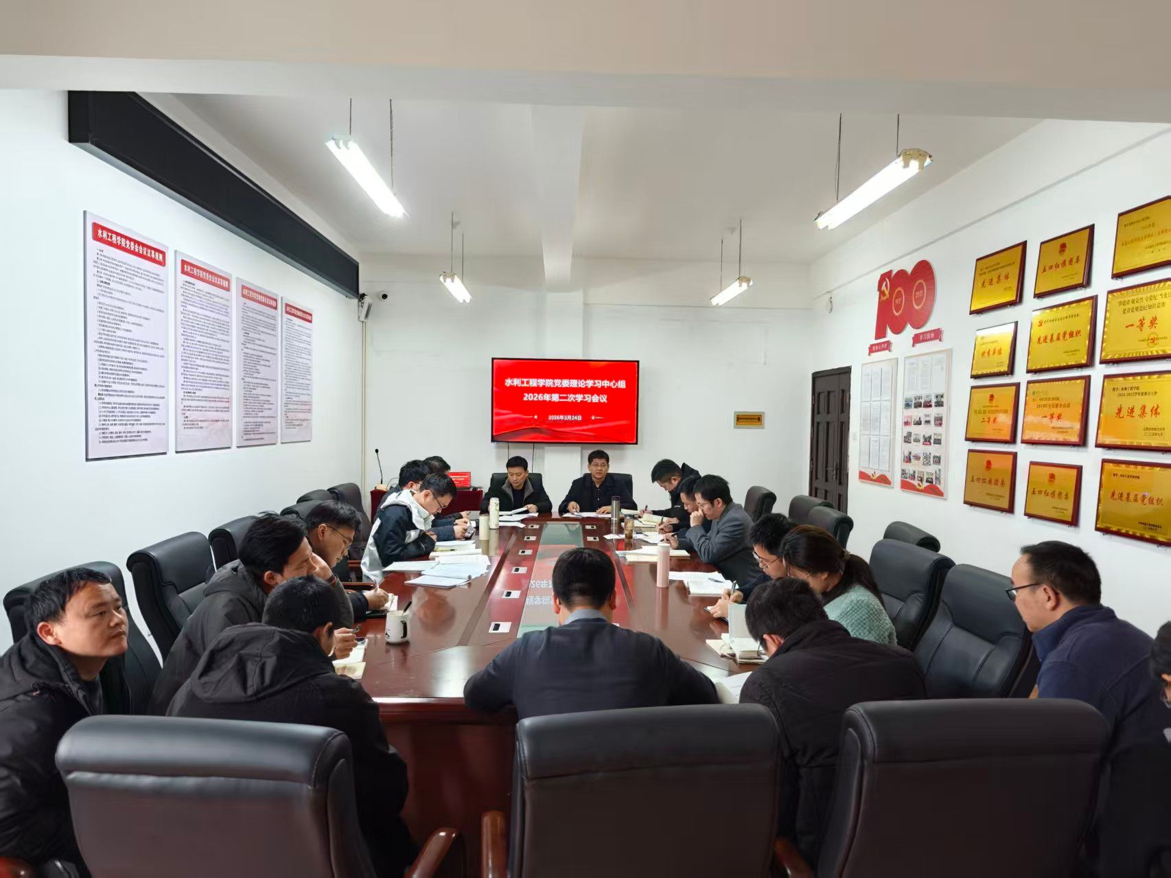 3月24日上午,学院党委理论学习中心组在逸夫水利楼A333会议室召开2026年第二次集体学习会,学院党委书记牛景太主持会议,其他领导班子成员参加,各党支部书记、科级干部列席。