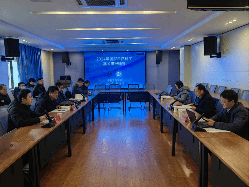 1月29日上午,校长刘祖文一行赴水利工程学院调研2024年度国家自然科学基金申报工作,在逸夫楼B400召开了国家自然科学基金专题辅导会。科研处负责人及相关同志参加走访调研,学院领导班子成员及教师共20余人参加现场辅导,60余名教师线上同步参会。