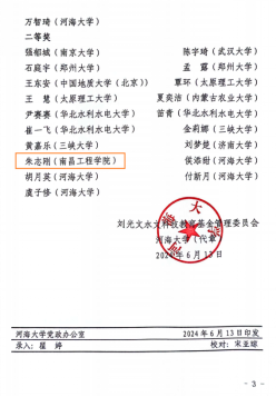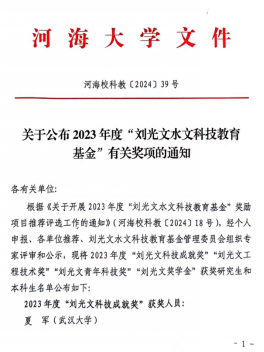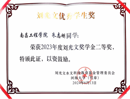 近日,2023年度刘光文奖学金获奖名单公布,我校2020级水文与水资源工程本科生朱志刚荣获本届刘光文奖学金二等奖。