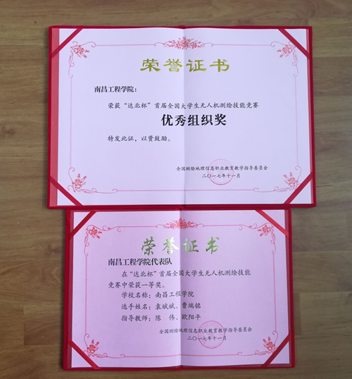 为培养学生的无人机操作以及内业数据处理等方面的实践能力,提高大学生解决无人机摄影测量生产实践问题的综合能力,检验实践教学效果,检验学生基础知识的掌握水平。11月4日-5日,由全国测绘地理信息职业教育教学指导委员会主办,河南工业职业技术学院承办,北京达北科技有限公司冠名赞助的“达北杯”首届全国大学生无人机测绘技能竞赛在河南南阳圆满落下帷幕。由水利与生态工程学院测绘教研室陈伟、欧阳平老师指导的代表队荣获一等奖,并荣获“优秀组织奖”。