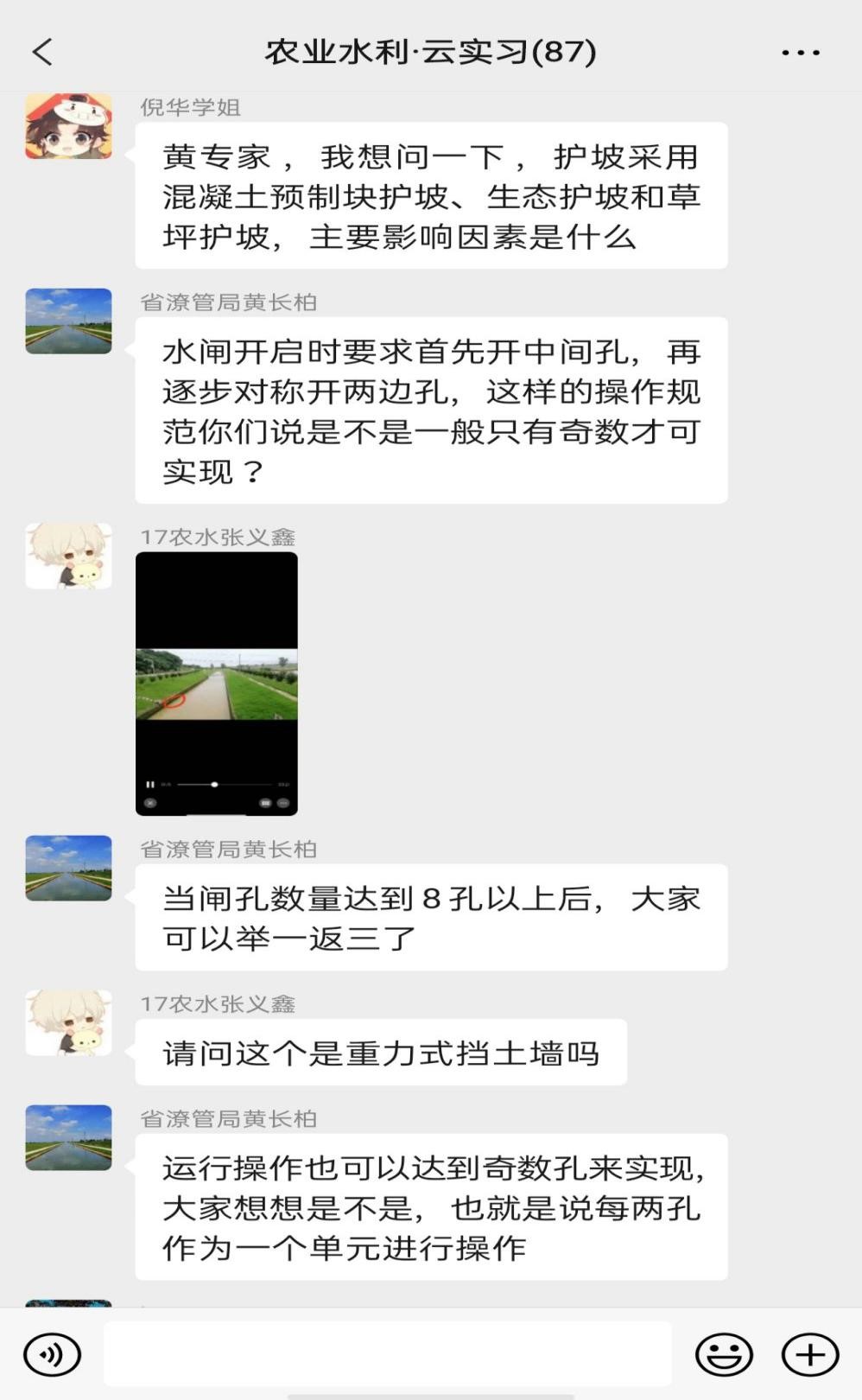 线上云实习邀请了潦河平原灌区管理局、灌溉实验站、三明水利局的专家校友,分别从灌区总布置、各类建筑结构形式、主要开展的灌溉试验以及相关仪器设备等方面,给同学们做了一个全新的展示。线下现场实习,分别赴峡江水利枢纽、博物馆、水文站、峡江抬田工程、军山湖河道堤防管理局等地进行了参观学习,并在军山湖河道堤防管理局与进贤县水利局相关人员进行座谈。