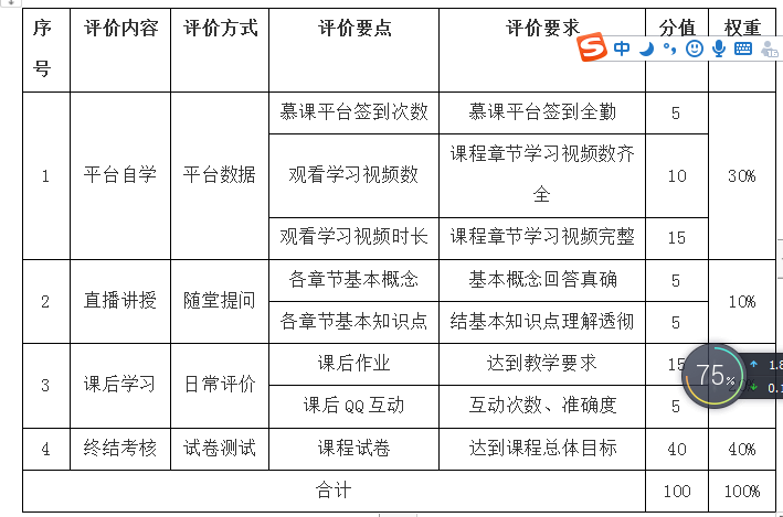 混合教学模式带来多元化的评价体系,根据课程的教学目标,两位老师将课程学习评价内容分为四个部分,分别是:平台自学内容的考核与评价;直播讲授内容的考核与评价;课后学习的考核与评价;终结考核的考核与评价。他们根据课程学习评价内容及原则,制定了18农业水利工程班级《水工钢筋混凝土结构》课程学习线上教学评价表,规定了考核内容及相应的权重。