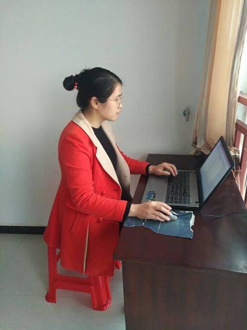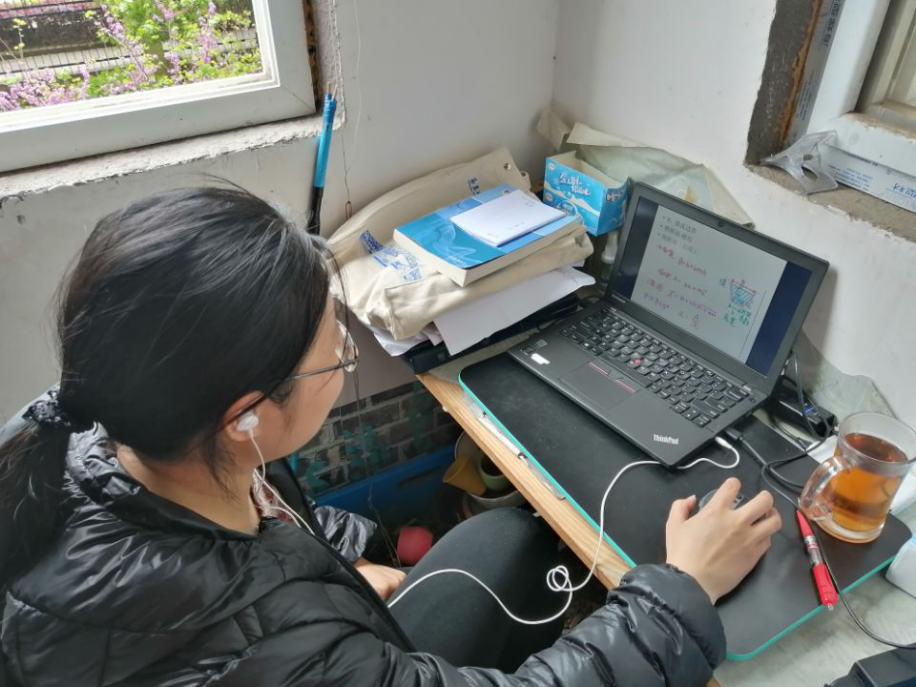 然而老家却没有电脑和网络,难题并没有把另老师难住。由于联防联控措施不断升级,普通网购物流已经到不了村镇了,另老师只得放弃买新电脑这个想法,她四处打电话求助找亲戚朋友们借电脑,终于从亲戚家借来了一台闲置的旧电脑,连上手机热点便开始了线上办公。