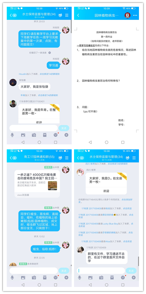 2月17日是本学期开学上课第一天,水利与生态工程学院师生按照原定课表准时开始了本学期的课程。受到新冠疫情影响,原来在教学南楼、教学北楼、逸夫楼教室的课程都搬到了家中、网上。除使用各大教学平台外,学院老师还积极采用QQ、微信等多种方式为学生上课、答疑、布置作业。
