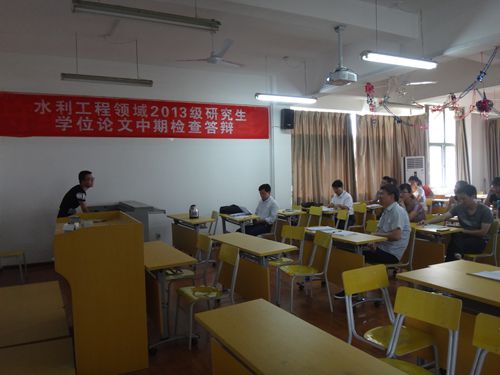 2015年6月6日,水利工程领域组织专家在逸夫楼A302会议室举行了2013级硕士专业学位研究生毕业论文中期检查考核答辩。答辩小组由研究生处负责人、水利工程领域各方向导师和领域秘书共7人组成,会议由水利工程领域负责人彭友文主持。