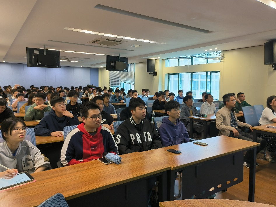 万迪文以“智慧水利数字孪生工程优秀案例解析”为主题,通过介绍智慧水利的目标、总体框架以及“四预”功能。万迪文为让学生直观的感受数字孪生万物互联、智慧模拟,现场进行数字孪生工程案例演示,重点讲解了虎山水文站的实时状态、实时预报及预警功能,着重强调了智慧水利工程在水利工程中的具体内容和重要地位,引发了学生的思考,让学生受益匪浅。