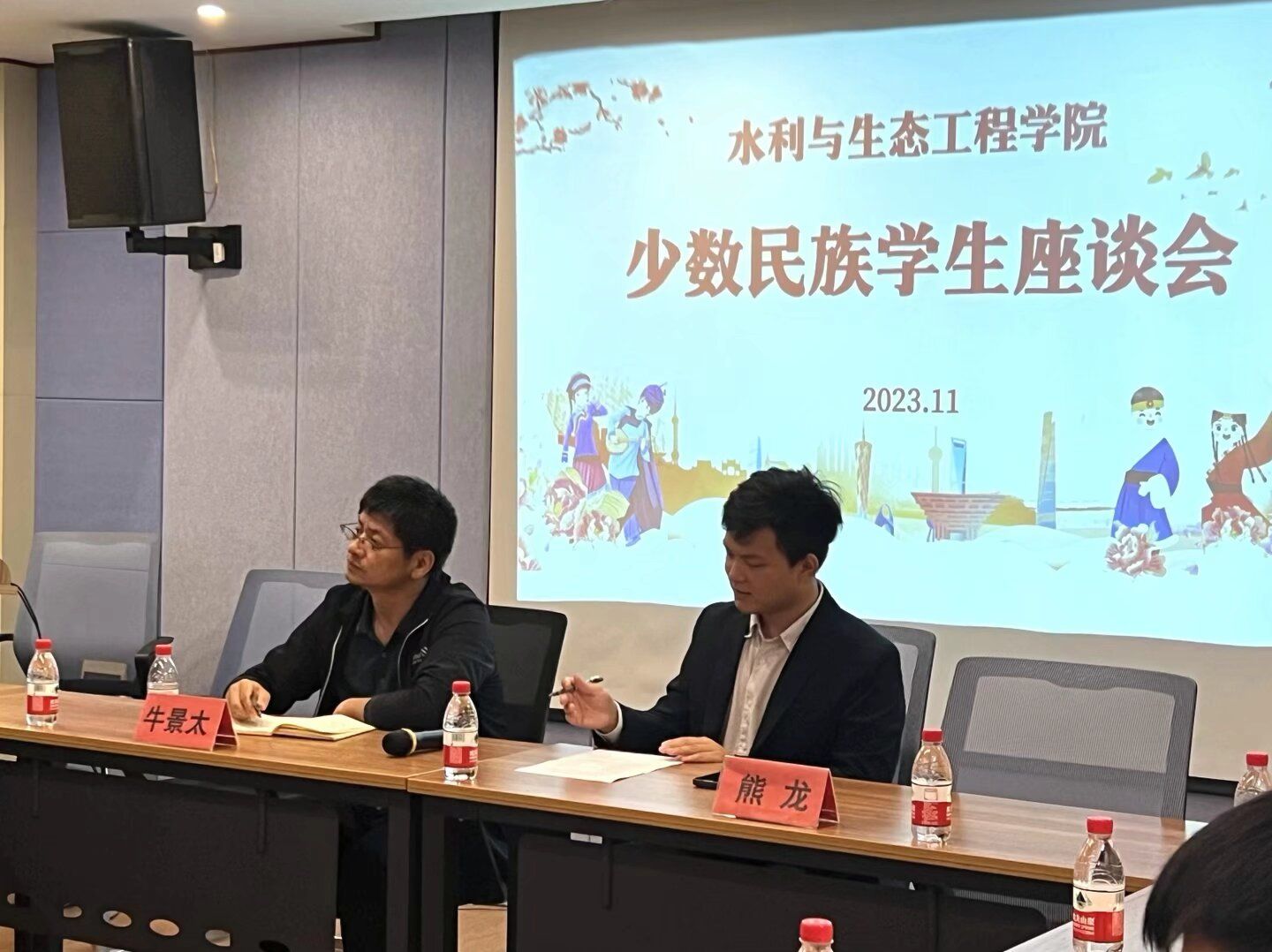 为深入贯彻落实中央民族工作会议精神,铸牢中华民族共同体意识,深化民族团结进步教育,促进各民族学生交往交流交融。11月23日,水利与生态工程学院在逸夫水利楼B400召开少数民族学生座谈会。副院长牛景太出席会议,少数民族学生代表及团学干部代表等40余人参加会议。会议由辅导员熊龙主持。