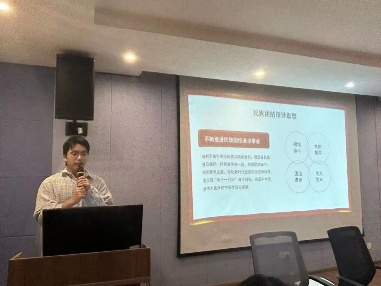 为铸牢中华民族共同体意识,推动各民族的友好交流,巩固和发展平等团结互助和谐的社会主义民族关系1123水利与生态工程学院逸夫水利楼B400召开民族团结主题团课,我院30余名少数民族学生参加团课,由院团委组织部部长余学亮主讲